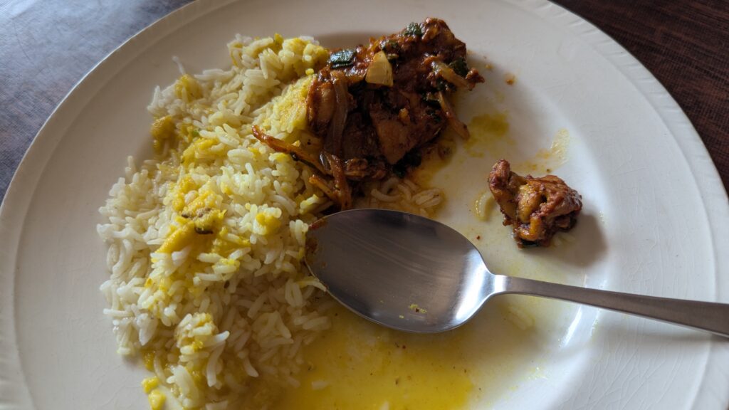 Choila Chicken is best eaten with rice and dal in my opinion. However you can eat it as you like. With hot chapati or plain rice as well.